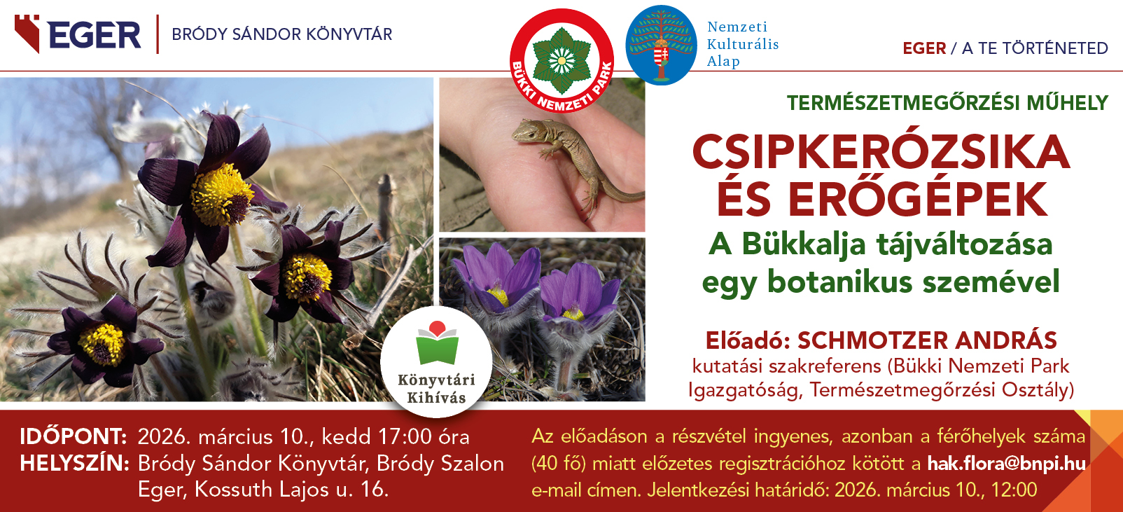 A Bükki Nemzeti Park és a Bródy Sándor Könyvtár szeretettel vár minden érdeklődőt a Természetmegőrzési Műhely soron következő előadására.