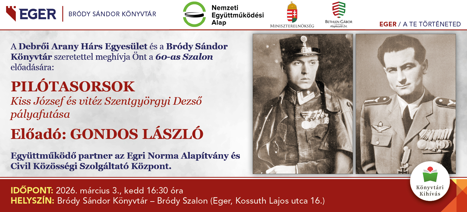 A Debrői Arany Hárs Egyesület és a Bródy Sándor Könyvtár szeretettel meghívja Önt a 60-as Szalon soron következő előadására.