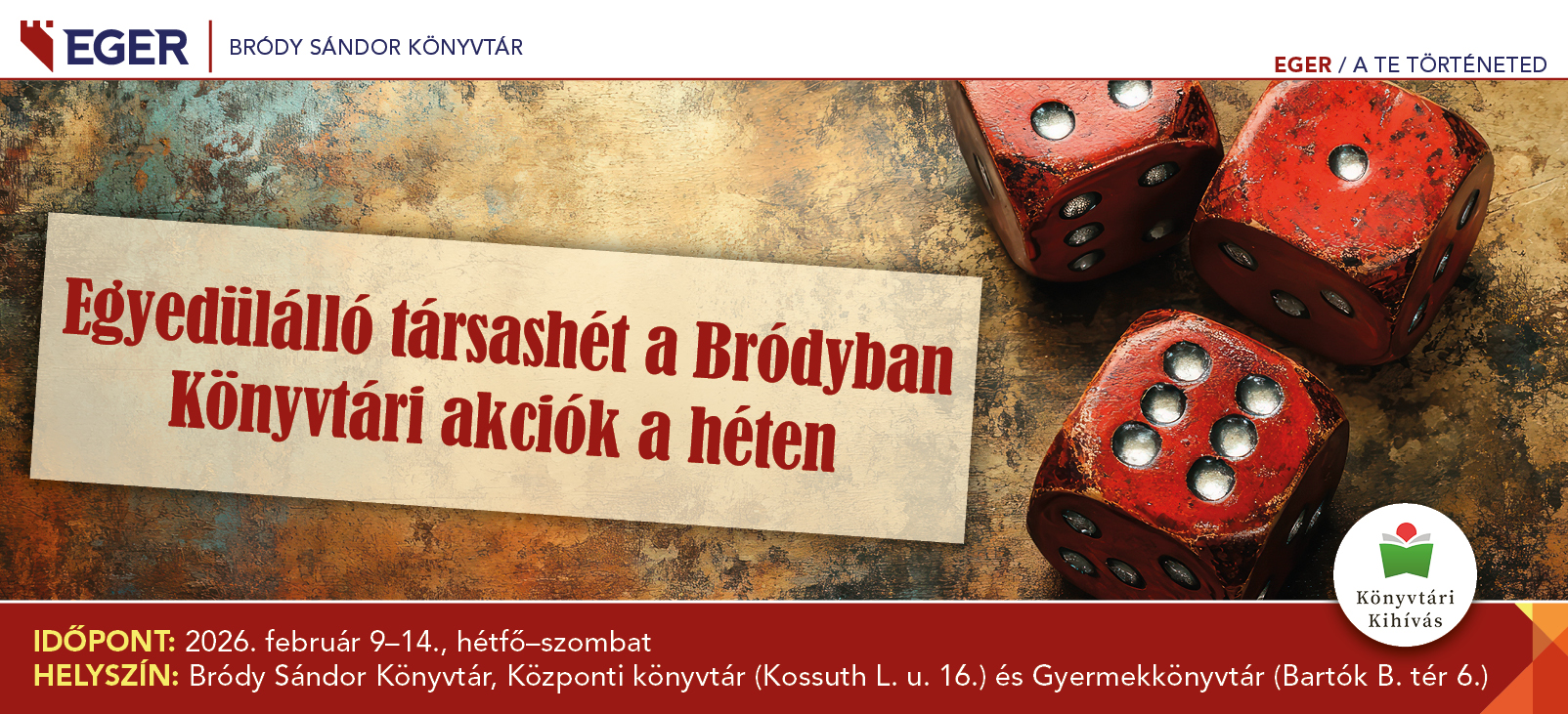 A Bródy Sándor Könyvtár 2026. február 9-től február 14-ig könyvtári akciókkal, új társasjátékokkal és színes programokkal várja az érdeklődőket.