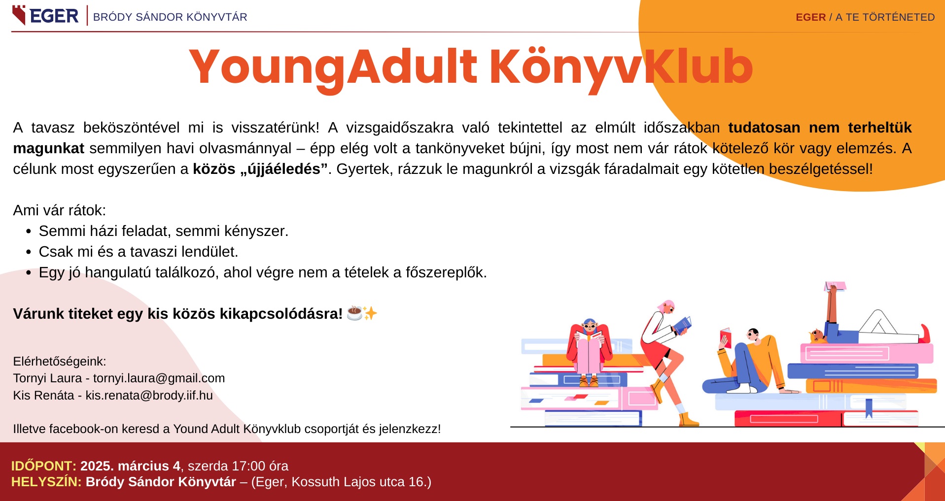 Szeretettel várunk minden érdeklődőt a YoungAdult Könyvklub soron következő találkozójára.