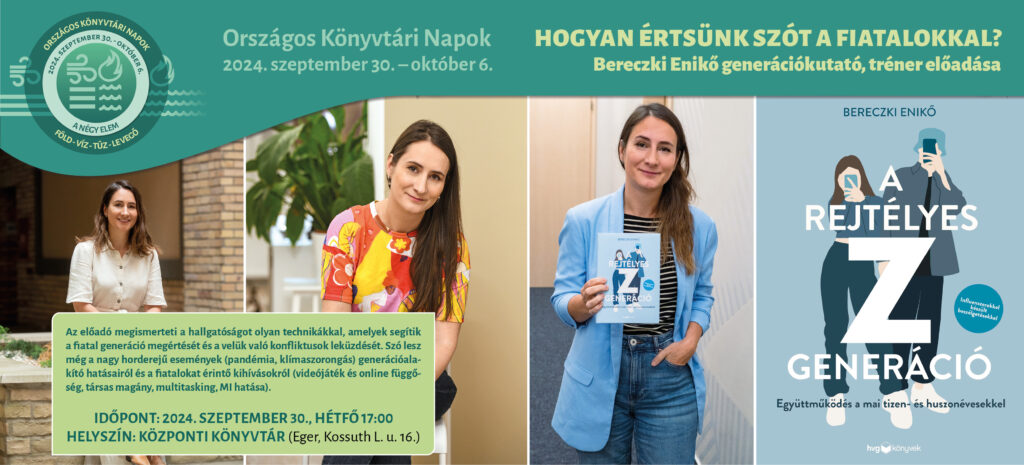 Bereczki Enikő generációkutató, tréner, A rejtélyes Z generáció című kötet szerzőjének előadása.