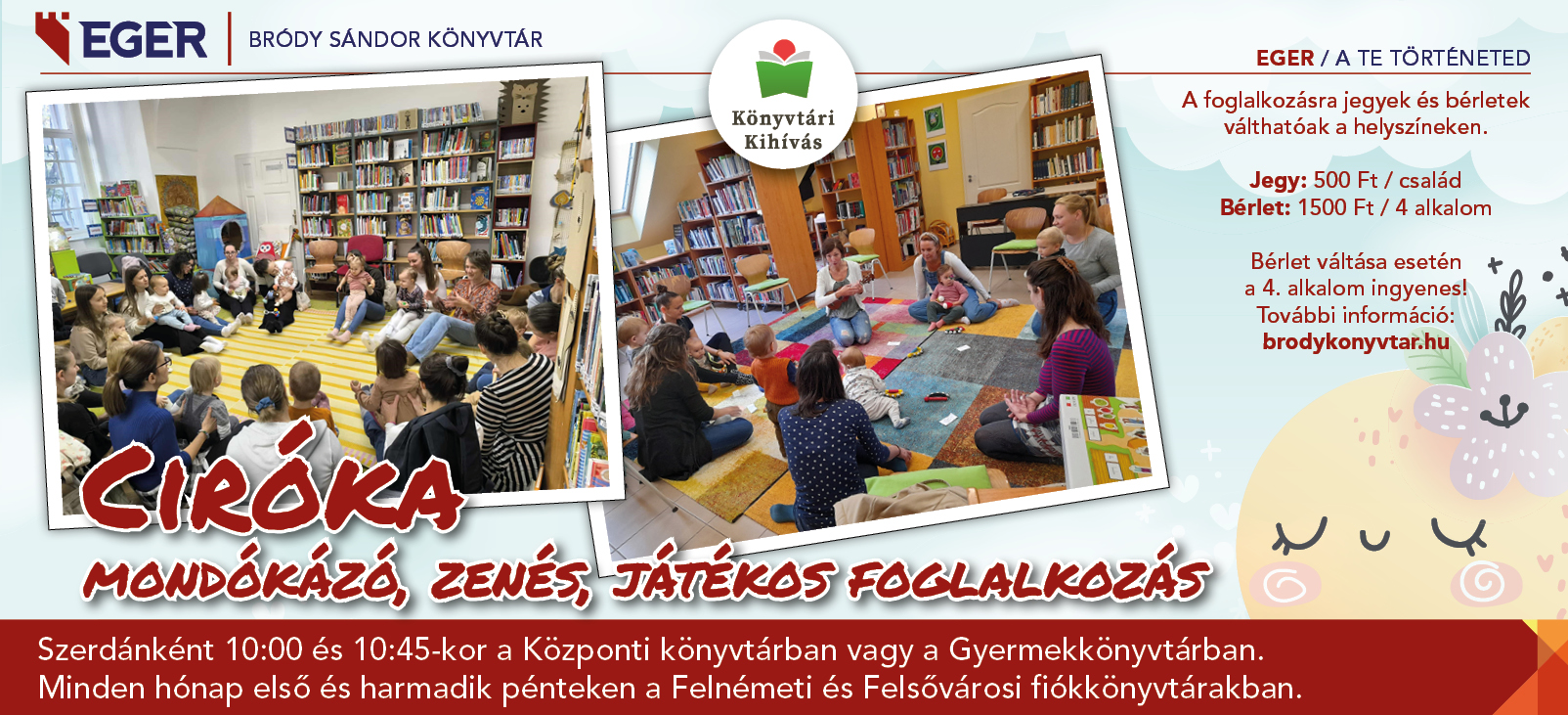 A Bródy Sándor Könyvtár ’’Ciróka” mondókázó, zenés, játékos alkalmaira szeretettel várjuk a kisgyermekes családokat!