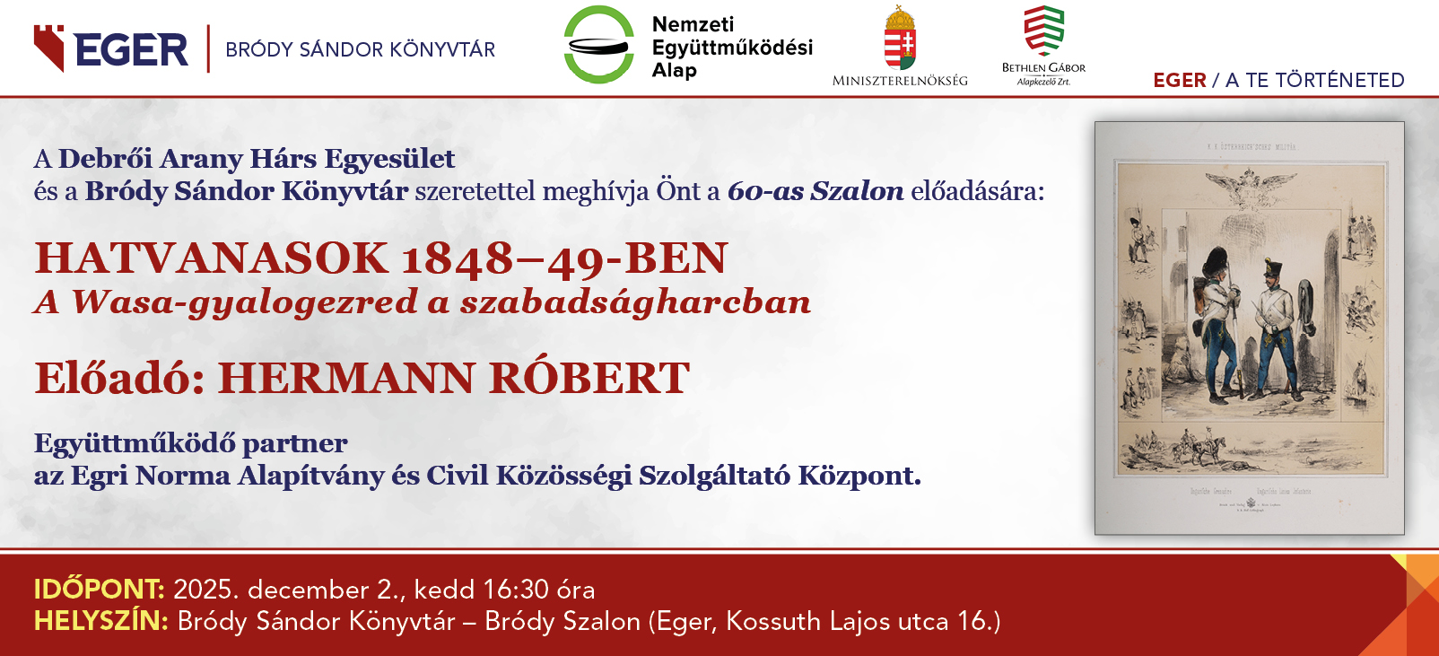 A Debrői Arany Hárs Egyesület és a Bródy Sándor Könyvtár szeretettel meghívja Önt a 60-as Szalon soron következő előadására.