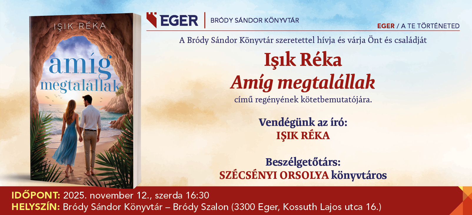 A Bródy Sándor Könyvtár szeretettel hívja és várja Önt és családját Işık Réka: Amíg megtalállak című kötet bemutatójára.