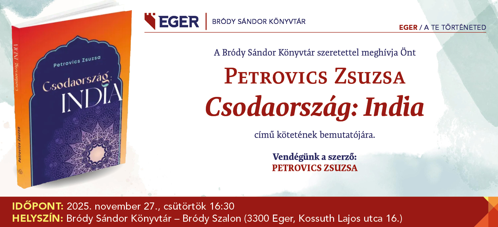 A Bródy Sándor Könyvtár szeretettel meghívja Önt Petrovics Zsuzsa: Csodaország: India című kötet bemutatójára.