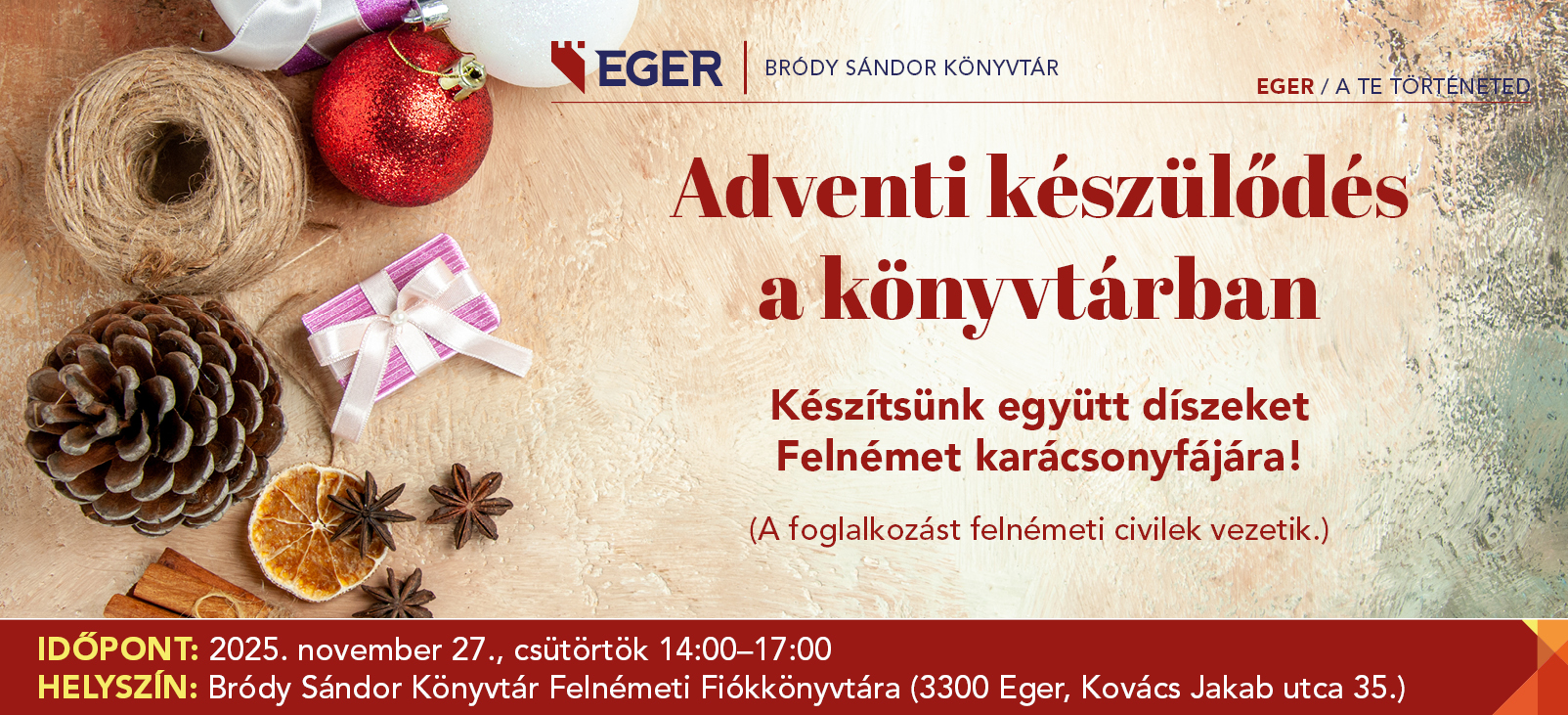 A Bródy Sándor Könyvtár Felnémeti Fiókkönyvtára vár mindenkit az Adventi készülődés a könyvtárban c. rendezvényére, amely a felnémeti civilek vezetésével valósul meg.