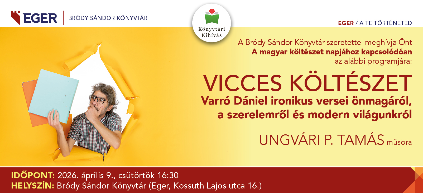 A Bródy Sándor Könyvtár szeretettel meghívja Önt A magyar költészet napjához kapcsolódóan Ungvári P. Tamás előadóestjére.