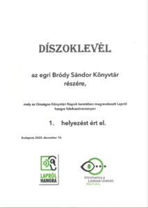 Lapról hangra felolvasóverseny_első helyen végzett a Bródy Sándor Könyvtár