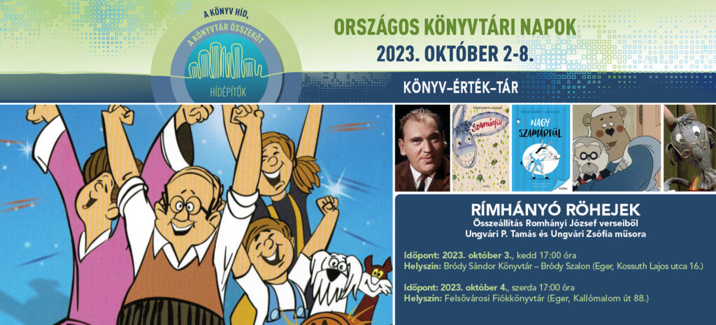A Bródy Sándor Könyvtár szeretettel meghívja Önt és családját Ungvári P. Tamás és Ungvári Zsófia „Rímhányó röhejek” c. előadására 2 időpontban.