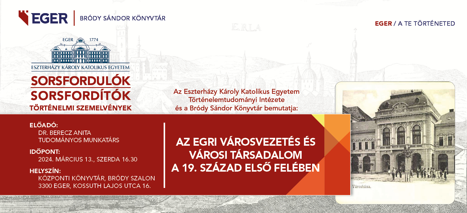 Az Eszterházy Károly Katolikus Egyetem Történelemtudományi Intézete és a Bródy Sándor Könyvtár bemutatja: Sorsfordulók Sorsfordítók Történelmi szemelvények