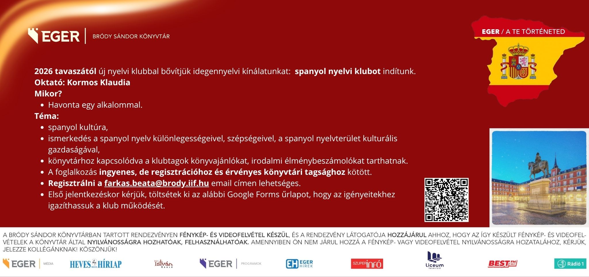 2026 tavaszától új nyelvi klubbal bővítjük idegennyelvi kínálatunkat: spanyol nyelvi klubot indítunk.
