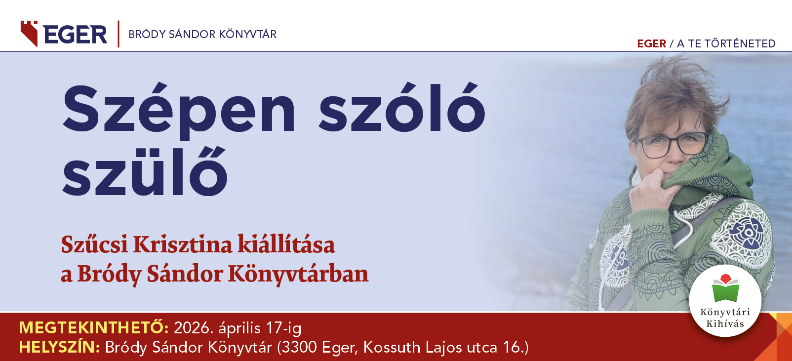 A Bródy Sándor Könyvtárban nyitvatartási időben, 2026. április 17-ig megtekinthető Szűcsi Krisztina: Szépen szóló szülő c. kiállítása.