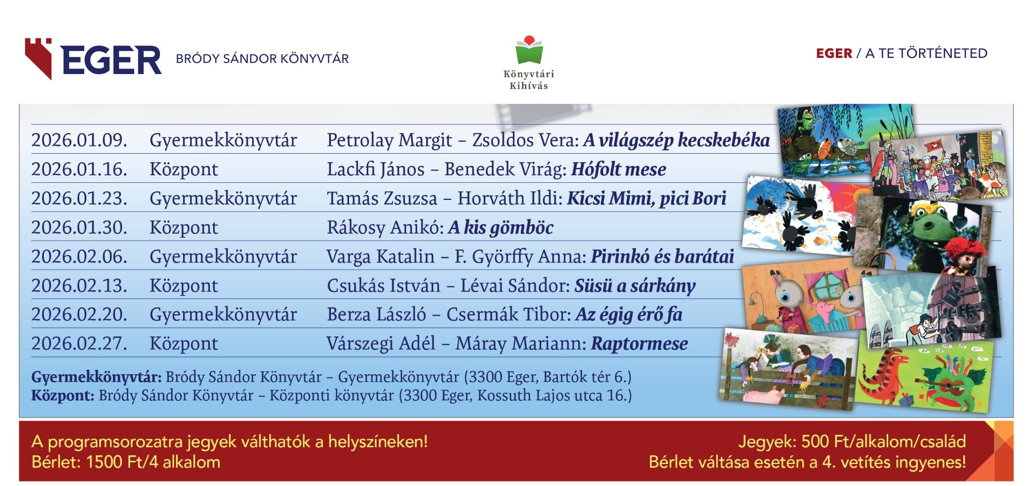 Gyermekkönyvtár – vetítési időpontok: